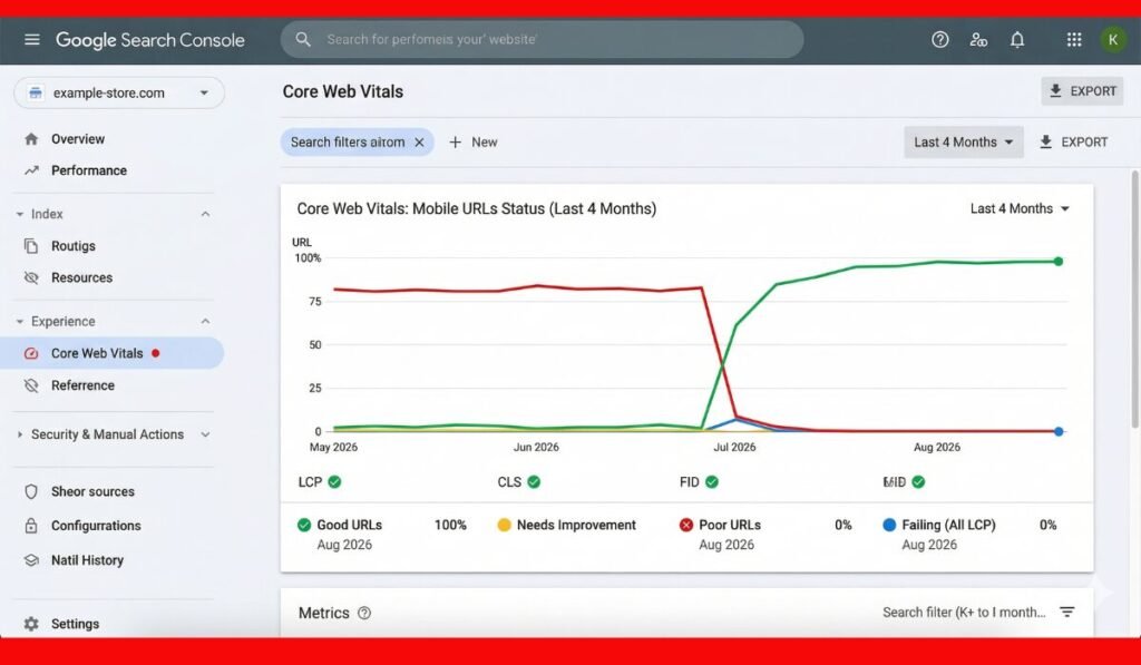 Look at that. The first two months were a sea of red. Our technical fix turned that line green. They had no “Poor URLs” left. Google rewarded this speed instantly.